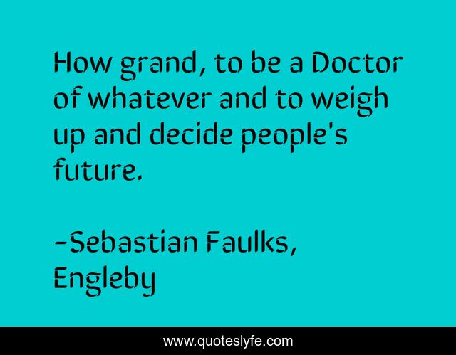 "Sebastian Faulks, Engleby Quotes." Quoteslyfe.com, 2025. Fri. 05 Dec. 2025. <https://www.quoteslyfe.com/quote/How-grand-to-be-a-Doctor-of-109951>.