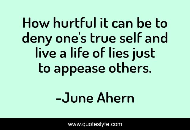 This page presents the quote "How hurtful it can be to deny one's true self and live a life of lies just to appease others.". Author of this quote is June Ahern. This quote is about life-lessons, spirituality, psychology, truth,.