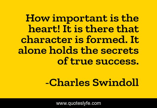 This page presents the quote "How important is the heart! It is there that character is formed. It alone holds the secrets of true success.". Author of this quote is Charles Swindoll. .