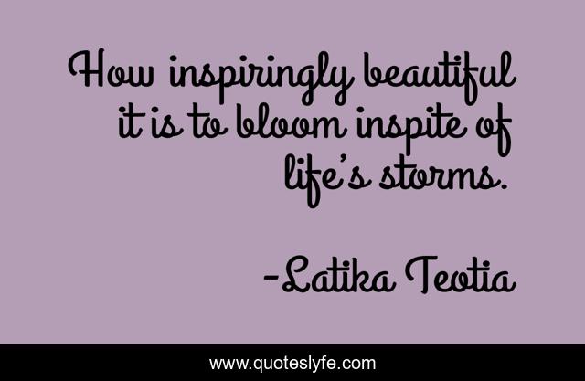 This page presents the quote "How inspiringly beautiful it is to bloom inspite of life’s storms.". Author of this quote is Latika Teotia. This quote is about enthusiasm, self-improvement, inspirational,.