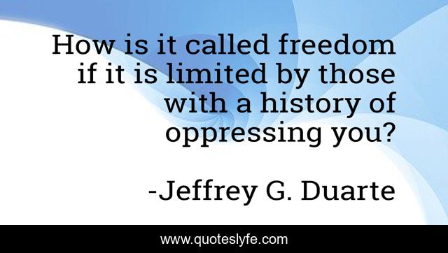 This page presents the quote "How is it called freedom if it is limited by those with a history of oppressing you?". Author of this quote is Jeffrey G. Duarte. This quote is about freedom, oppression, history, limited,.