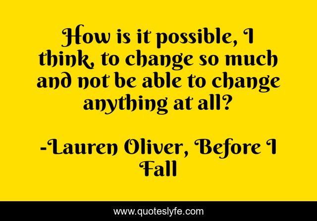 This page presents the quote "How is it possible, I think, to change so much and not be able to change anything at all?". Author of this quote is Lauren Oliver, Before I Fall. This quote is about before-i-fall, young-adult-fiction,.