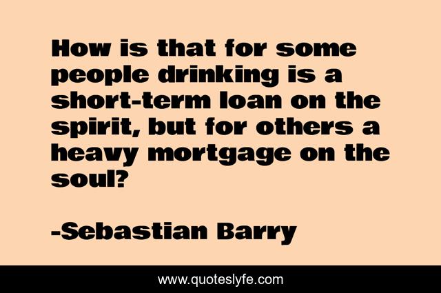 This page presents the quote "How is that for some people drinking is a short-term loan on the spirit, but for others a heavy mortgage on the soul?". Author of this quote is Sebastian Barry. This quote is about alcohol, alcoholism,.