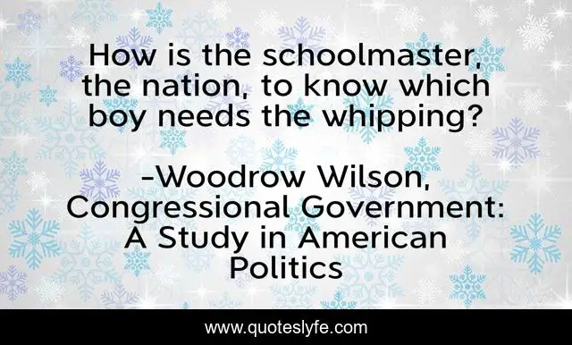 This page presents the quote "How is the schoolmaster, the nation, to know which boy needs the whipping?". Author of this quote is Woodrow Wilson, Congressional Government: A Study in American Politics. .