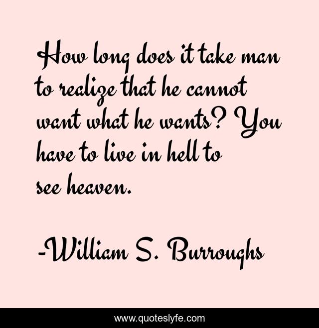 This page presents the quote "How long does it take man to realize that he cannot want what he wants? You have to live in hell to see heaven.". Author of this quote is William S. Burroughs. This quote is about hell, living,.