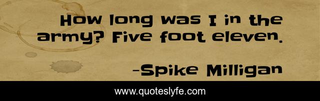 This page presents the quote "How long was I in the army? Five foot eleven.". Author of this quote is Spike Milligan. This quote is about five, long, army,.
