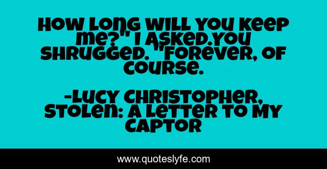 This page presents the quote "How long will you keep me?" I asked.You shrugged. "Forever, of course.". Author of this quote is Lucy Christopher, Stolen: A Letter to My Captor. .