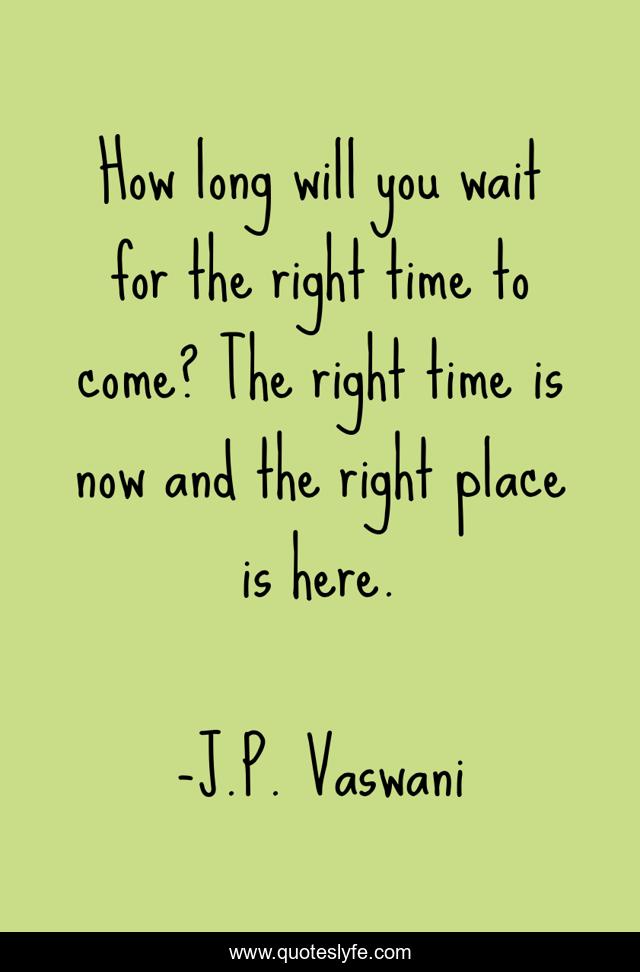 "J.P. Vaswani Quotes." Quoteslyfe.com, 2025. Sat. 06 Dec. 2025. <https://www.quoteslyfe.com/quote/How-long-will-you-wait-for-the-254525>.