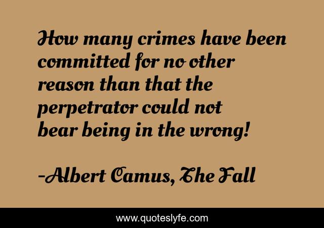 This page presents the quote "How many crimes have been committed for no other reason than that the perpetrator could not bear being in the wrong!". Author of this quote is Albert Camus, The Fall. This quote is about camus, the-fall, crime,.