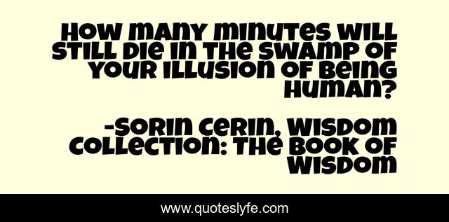 This page presents the quote "How many minutes will still die in the swamp of your illusion of being human?". Author of this quote is Sorin Cerin, Wisdom Collection: The Book of Wisdom. This quote is about life, illusion, wisdom-inspirational,.