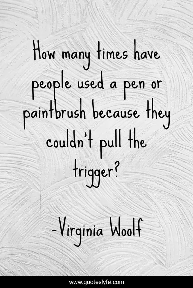 This page presents the quote "How many times have people used a pen or paintbrush because they couldn’t pull the trigger?". Author of this quote is Virginia Woolf. .