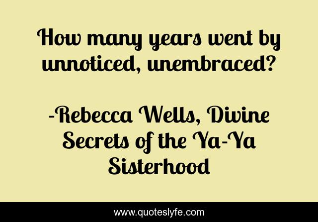 "Rebecca Wells, Divine Secrets of the Ya-Ya Sisterhood Quotes." Quoteslyfe.com, 2025. Fri. 05 Dec. 2025. <https://www.quoteslyfe.com/quote/How-many-years-went-by-unnoticed-unembraced-209237>.
