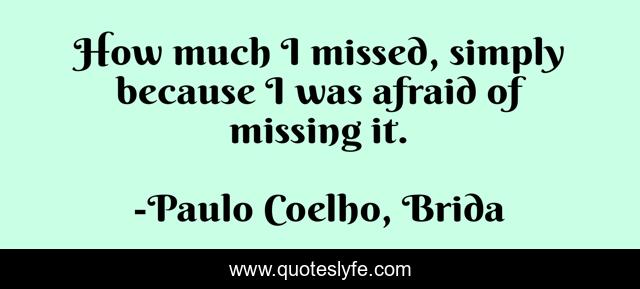 "Paulo Coelho, Brida Quotes." Quoteslyfe.com, 2025. Fri. 05 Dec. 2025. <https://www.quoteslyfe.com/quote/How-much-I-missed-simply-because-I-2110>.