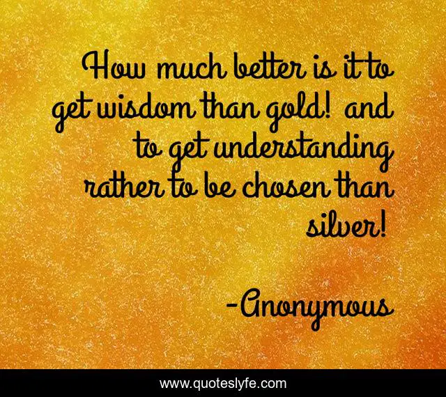 This page presents the quote "How much better is it to get wisdom than gold! and to get understanding rather to be chosen than silver!". Author of this quote is Anonymous. .