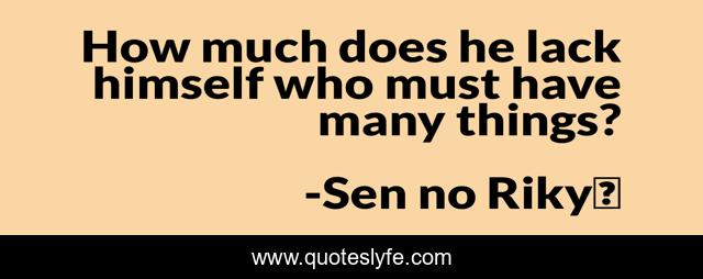 This page presents the quote "How much does he lack himself who must have many things?". Author of this quote is Sen no Rikyū. This quote is about eastern-philosophy, tea, philosophy, zen, poetry, asian-philosophy, zen-buddhism, japan, materialism,.