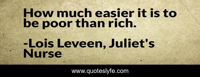 This page presents the quote "How much easier it is to be poor than rich.". Author of this quote is Lois Leveen, Juliet's Nurse. This quote is about middle-ages, shakespeare,.
