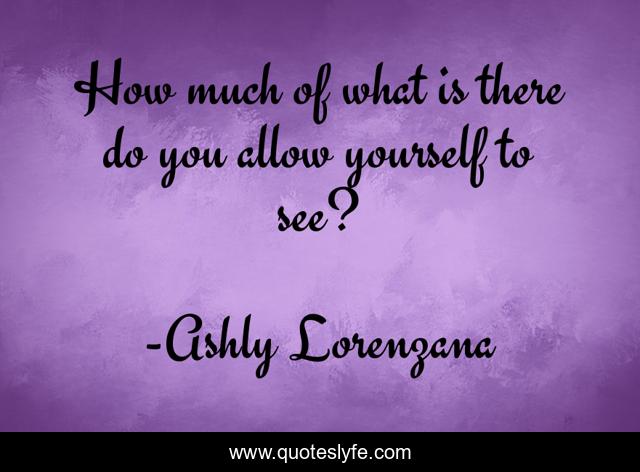 This page presents the quote "How much of what is there do you allow yourself to see?". Author of this quote is Ashly Lorenzana. This quote is about choice, perception, truth, reality,.
