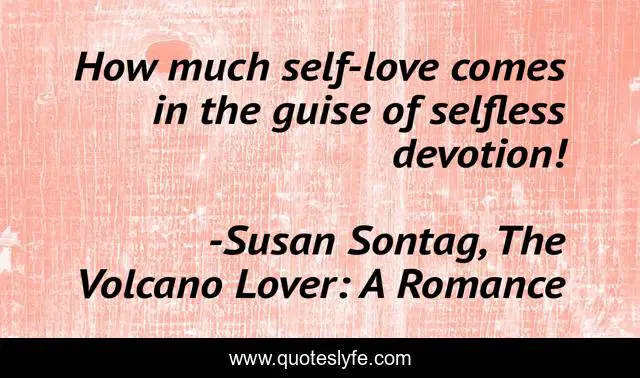 This page presents the quote "How much self-love comes in the guise of selfless devotion!". Author of this quote is Susan Sontag, The Volcano Lover: A Romance. This quote is about selflessness, self-love, pretense, devotion,.