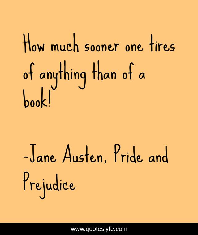 This page presents the quote "How much sooner one tires of anything than of a book!". Author of this quote is Jane Austen, Pride and Prejudice. .