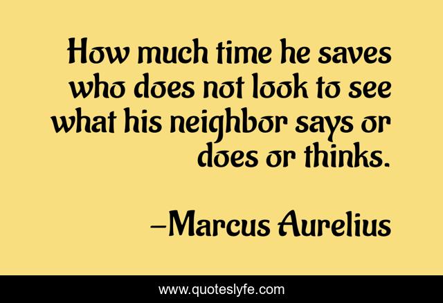 This page presents the quote "How much time he saves who does not look to see what his neighbor says or does or thinks.". Author of this quote is Marcus Aurelius. This quote is about see, look, neighbor,.