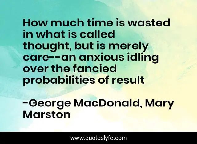 This page presents the quote "How much time is wasted in what is called thought, but is merely care--an anxious idling over the fancied probabilities of result". Author of this quote is George MacDonald, Mary Marston. .