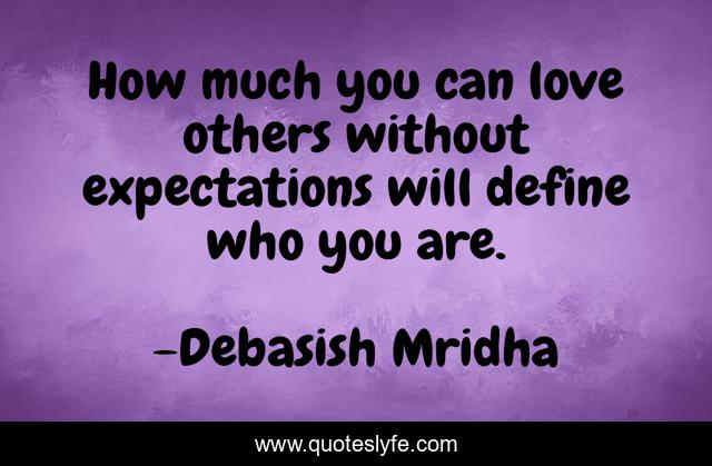 This page presents the quote "How much you can love others without expectations will define who you are.". Author of this quote is Debasish Mridha. This quote is about love, philosophy, debasish-mridha, expectations, define-who-you-are, quotes, debasish-mridha-md, inspirational, enthusiasm,.