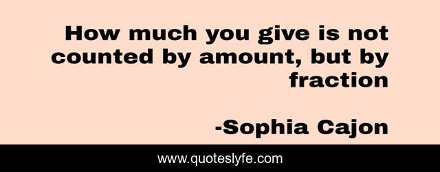 This page presents the quote "How much you give is not counted by amount, but by fraction". Author of this quote is Sophia Cajon. This quote is about money, donations, wealth, inspiration,.