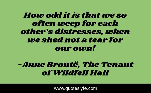 This page presents the quote "How odd it is that we so often weep for each other’s distresses, when we shed not a tear for our own!". Author of this quote is Anne Brontë, The Tenant of Wildfell Hall. This quote is about selflessness, mourning, friendship, companionship, sad,.
