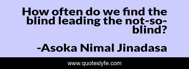 This page presents the quote "How often do we find the blind leading the not-so-blind?". Author of this quote is Asoka Nimal Jinadasa. This quote is about positive, confidence, motivational, optimistic,.