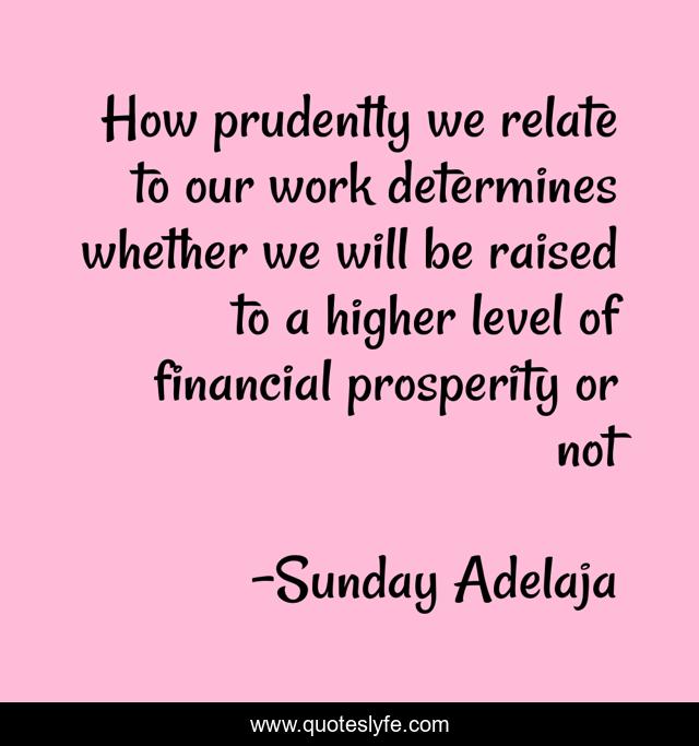 This page presents the quote "How prudently we relate to our work determines whether we will be raised to a higher level of financial prosperity or not". Author of this quote is Sunday Adelaja. This quote is about prosperity, financial, wealth, level, money, work, riches, relate, prudently,.