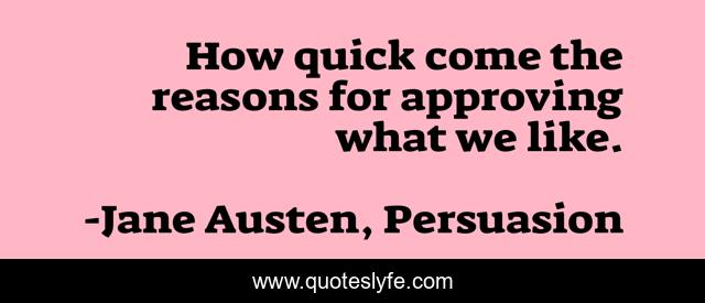 "Jane Austen, Persuasion Quotes." Quoteslyfe.com, 2025. Fri. 05 Dec. 2025. <https://www.quoteslyfe.com/quote/How-quick-come-the-reasons-for-approving-2413>.