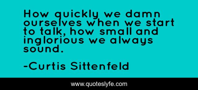 This page presents the quote "How quickly we damn ourselves when we start to talk, how small and inglorious we always sound.". Author of this quote is Curtis Sittenfeld. This quote is about chick-lit, young-adult-fiction,.