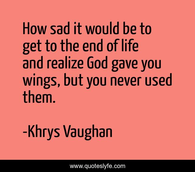 This page presents the quote "How sad it would be to get to the end of life and realize God gave you wings, but you never used them.". Author of this quote is Khrys Vaughan. This quote is about fear, life, inspiration,.