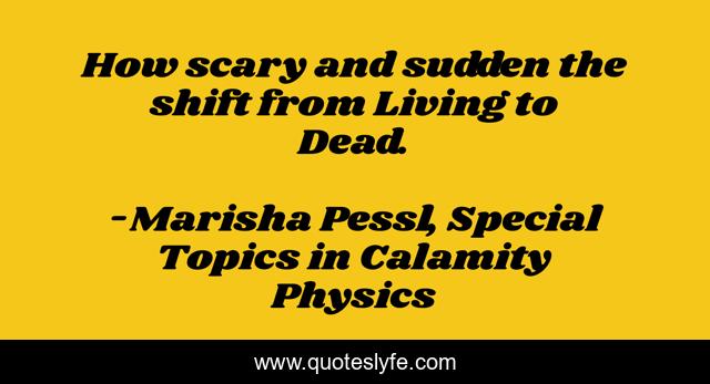 This page presents the quote "How scary and sudden the shift from Living to Dead.". Author of this quote is Marisha Pessl, Special Topics in Calamity Physics. This quote is about living, death, scary, shift, transition, fiction, sudden, change,.