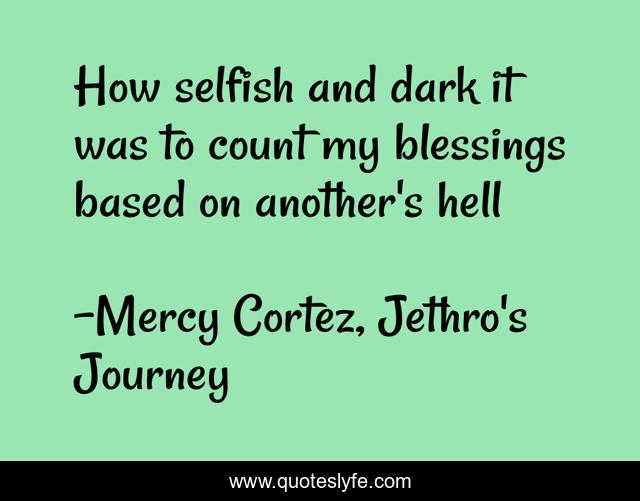 "Mercy Cortez, Jethro's Journey Quotes." Quoteslyfe.com, 2025. Fri. 05 Dec. 2025. <https://www.quoteslyfe.com/quote/How-selfish-and-dark-it-was-to-201916>.