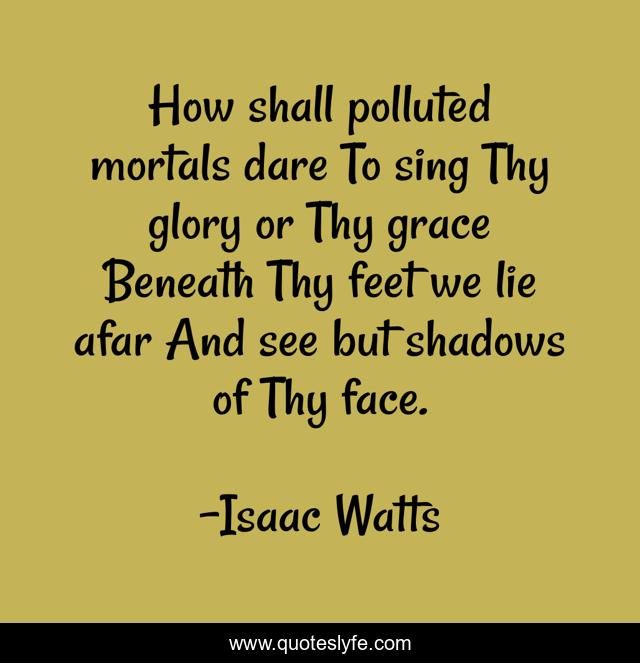 This page presents the quote "How shall polluted mortals dare To sing Thy glory or Thy grace Beneath Thy feet we lie afar And see but shadows of Thy face.". Author of this quote is Isaac Watts. .