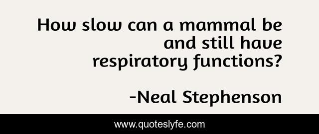 This page presents the quote "How slow can a mammal be and still have respiratory functions?". Author of this quote is Neal Stephenson. .