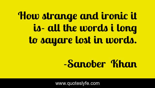 This page presents the quote "How strange and ironic it is- all the words i long to sayare lost in words.". Author of this quote is Sanober Khan. This quote is about longing, poets, poetry, emotions, feelings, words, thoughts, speak,.
