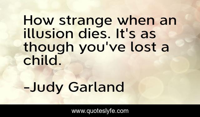 This page presents the quote "How strange when an illusion dies. It's as though you've lost a child.". Author of this quote is Judy Garland. This quote is about disillusionment, illusion,.