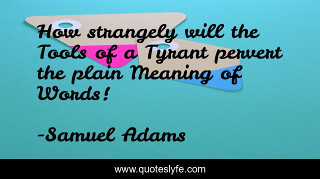 This page presents the quote "How strangely will the Tools of a Tyrant pervert the plain Meaning of Words!". Author of this quote is Samuel Adams. This quote is about tyranny, meaning, words,.