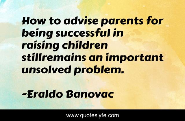 This page presents the quote "How to advise parents for being successful in raising children stillremains an important unsolved problem.". Author of this quote is Eraldo Banovac. This quote is about parents-and-children, parents, raising-children,.