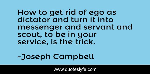 This page presents the quote "How to get rid of ego as dictator and turn it into messenger and servant and scout, to be in your service, is the trick.". Author of this quote is Joseph Campbell. This quote is about ego, self-awareness, self-control,.