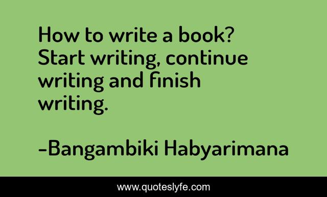 This page presents the quote "How to write a book? Start writing, continue writing and finish writing.". Author of this quote is Bangambiki Habyarimana. .