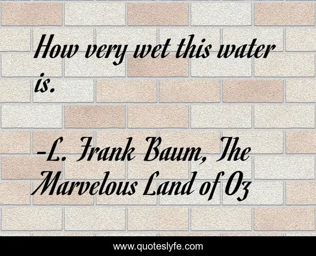 "L. Frank Baum, The Marvelous Land of Oz Quotes." Quoteslyfe.com, 2025. Sun. 07 Dec. 2025. <https://www.quoteslyfe.com/quote/How-very-wet-this-water-is-40374>.
