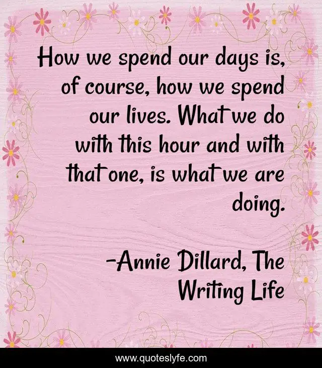 "Annie Dillard, The Writing Life Quotes." Quoteslyfe.com, 2025. Fri. 05 Dec. 2025. <https://www.quoteslyfe.com/quote/How-we-spend-our-days-is-of-105052>.