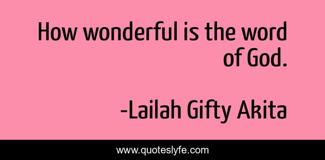 This page presents the quote "How wonderful is the word of God.". Author of this quote is Lailah Gifty Akita. This quote is about bible-study, word-of-god, scriptures, christianity,.