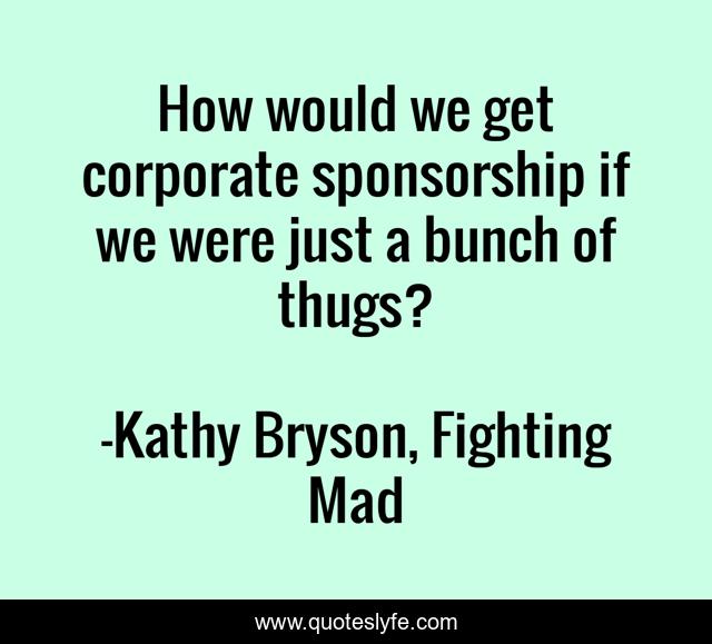 "Kathy Bryson, Fighting Mad Quotes." Quoteslyfe.com, 2025. Fri. 05 Dec. 2025. <https://www.quoteslyfe.com/quote/How-would-we-get-corporate-sponsorship-if-82628>.