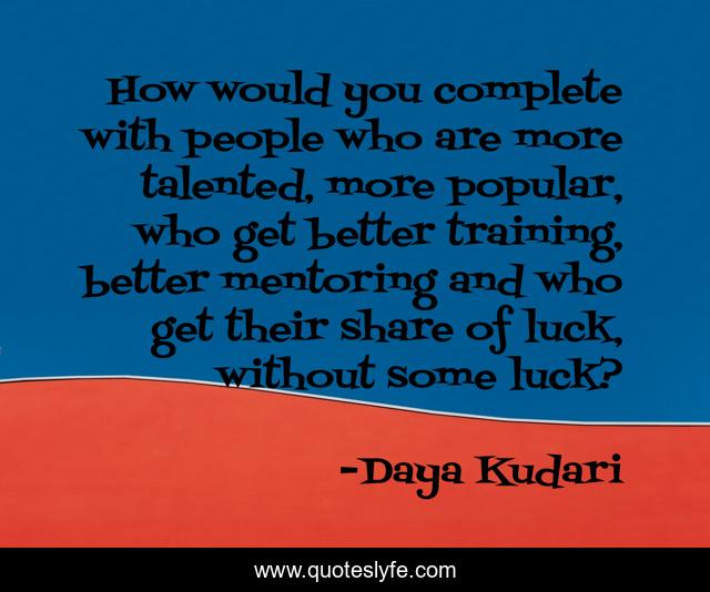This page presents the quote "How would you complete with people who are more talented, more popular, who get better training, better mentoring and who get their share of luck, without some luck?". Author of this quote is Daya Kudari. This quote is about life, opportunity, luck,.