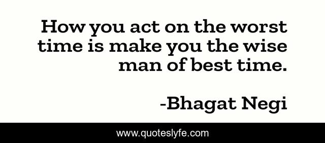 This page presents the quote "How you act on the worst time is make you the wise man of best time.". Author of this quote is Bhagat Negi. This quote is about advices, motivation, decisions, work-hard,.
