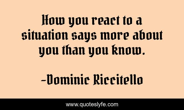 This page presents the quote "How you react to a situation says more about you than you know.". Author of this quote is Dominic Riccitello. This quote is about reaction, life, quote, understanding, truth, opinion, thoughts,.